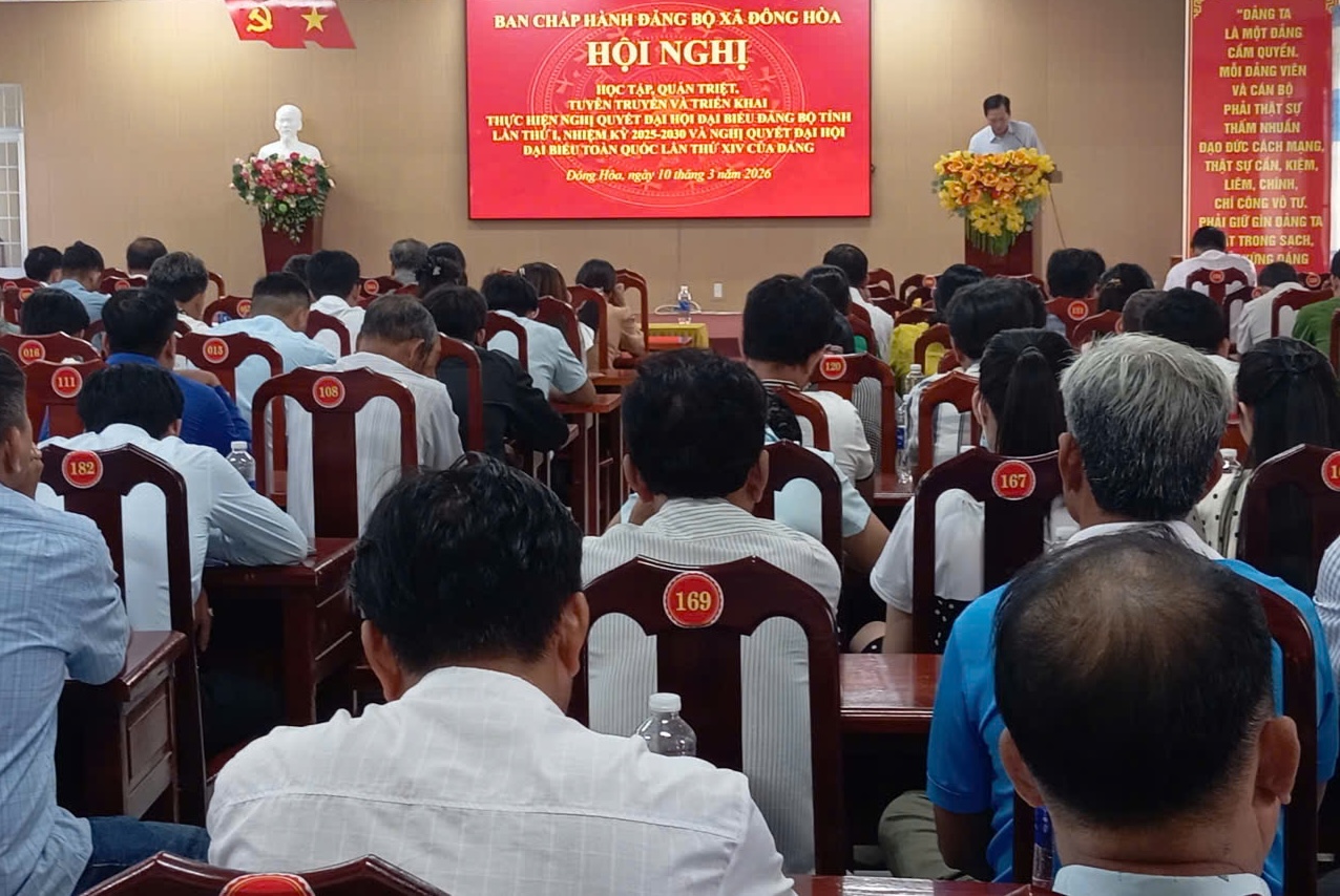 Đảng uỷ xã Đông Hoà tổ chức Hội nghị quán triệt, tuyên truyền và triển khai thực hiện Nghị quyết Đại hội Đảng bộ tỉnh An Giang lần thứ I nhiệm kỳ 2025-2030 và Nghị quyết Đại hội XIV của Đảng.