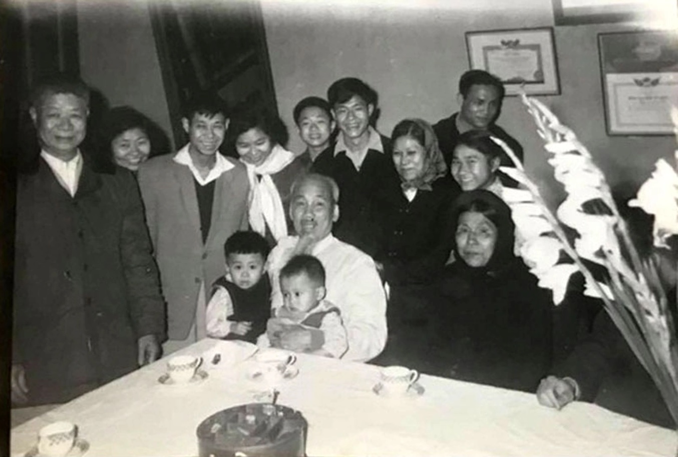 Chủ tịch Hồ Chí Minh thăm và chúc Tết gia đình ông Nguyễn Văn Thức - nhà tư sản dân tộc, vào giao thừa Tết Quý Mão 1963. Ảnh: TL