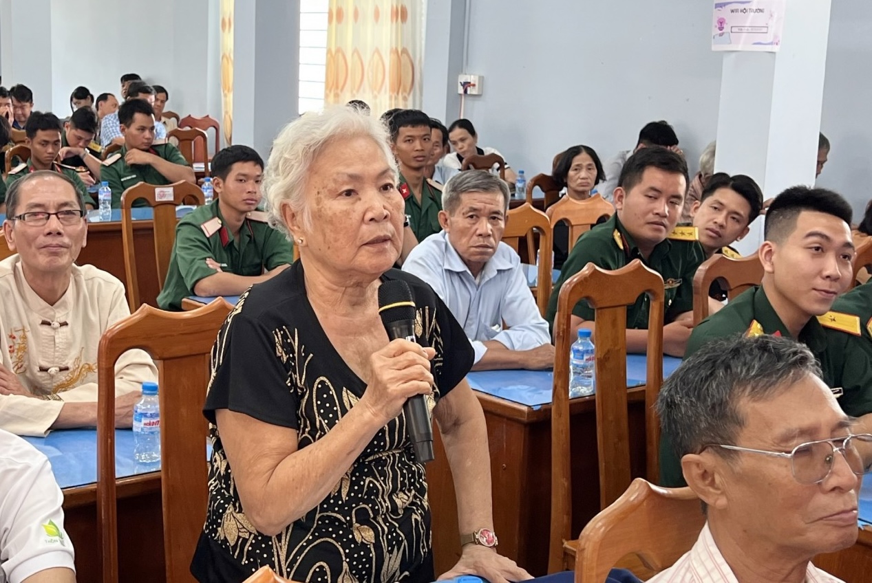 Cử tri phường Long Xuyên phát biểu ý kiến với các ứng cử viên đơn vị bầu cử số 2. Ảnh: AGO