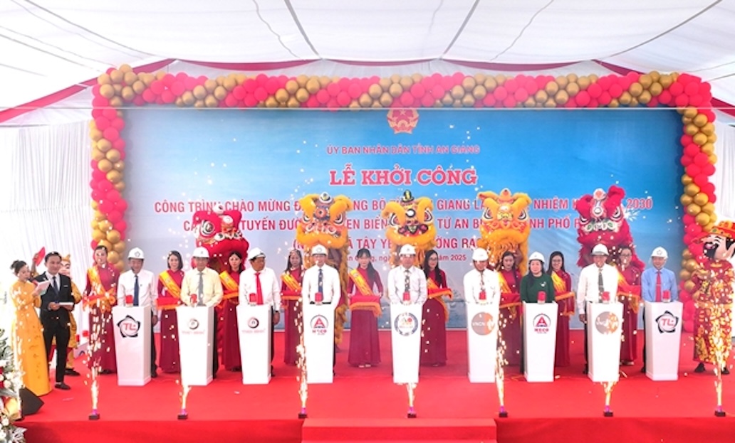 Uỷ ban nhân dân tỉnh An Giang tổ chức Lễ khởi công Dự án cầu trên tuyến đường bộ ven biển kết nối từ An Biên - Rạch Giá. Ảnh: Báo Quân đội nhân dân